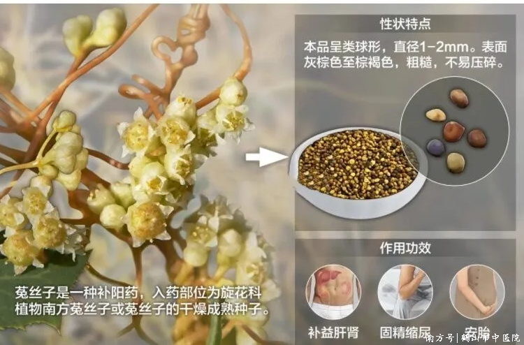 菟丝子的核心功效在于补肾益精、养肝明目、固精缩尿、止泻安胎: