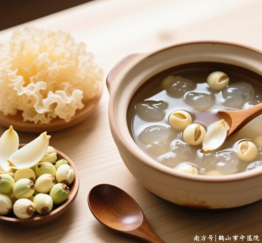 银耳一朵,干百合15克,莲子20克,冰糖适量。银耳泡发后撕小朵,与百合、莲子同煮至黏稠软糯,加入冰糖调味。此羹滋阴润燥,安神助眠,能由内而外对抗干燥,滋润身心。