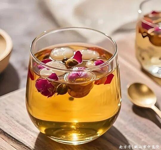 干玫瑰花5-6朵,桂圆肉5颗。放入杯中,用沸水冲泡,焖5分钟即可饮用。这道茶饮香气怡人,能温暖中焦,舒畅肝气,缓解冬季的沉闷感,带来一丝暖意与甜美。