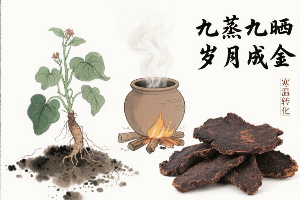 如地黄,新鲜时性寒,称“生地”;经黄酒反复蒸晒,转为性温的“熟地”。寒与温,本是两极,却在九蒸九晒的时光淬炼中完成转化。这恰似旧年累积的种种经验,经过岁末的沉淀与反思,转化为新岁的智慧。