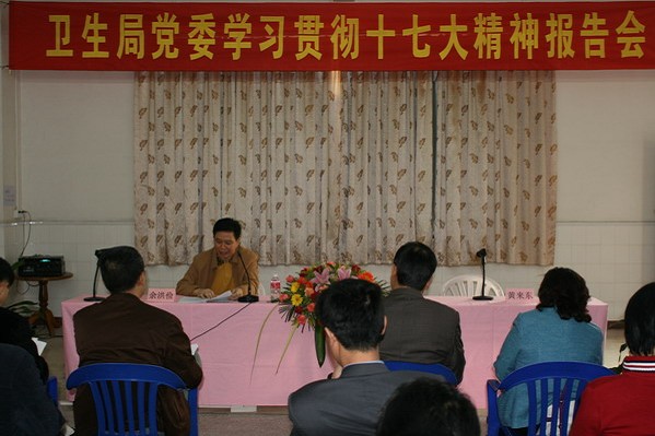 为深入学习贯彻中国共产党第十七次全国代表大会精神,切实把全体干部职工的思想统一到“十七大”精神上来,11月30日下午,我院组织全院党员和中层干部参加市卫生局党委举办学习贯彻党十七大精神报告会。 报告会邀请了市委党校余洪俭副校长作辅导学习报告。余副校长首先要求我们要充分认识“十七大”会议的重要性,并深刻领会“十七大”的主题、伟大旗帜,深刻领会党十六大以来所取得的重大成就,深刻领会改革开放的伟大历史进程和宝贵经验,深刻领会科学发展观的科学内涵,深刻领会全面建设小康社会的新要求,深刻领会社会主义经济建设、政治建设、文化建设和社会建设,深刻领会以改革创新精神全面推动党的建设新的伟大工程等七个方面全面解读了党的十七大报告。 卫生局党委副书记、纪委书记黄来东同志高度肯定了报告会的效果,认为余校长的报告内容丰富、理论性强、生动易懂、非常具有说服力,有利于帮助该党委全体党员干部职工深入领会“十七大”精神实质。最后,黄来东副书记就如何贯彻落实“十七大”精神提出三点意见:一是各单位要精心组织,认真学习,在理解精神实质上下功夫,要把学习贯彻作为当前最重要的政治任务来抓紧,领导带头、率先垂范,精心组织,制定方案,创新栽体,周密安排,让“十七大”精神深入人心;二是各单位要结合实际,深入贯彻,在如何努力实现“人人享有基本医疗卫生服务”上下功夫,要在今后的医疗卫生工作中积极探索,勇于实践,以提高全民健康水平为己任,争取早日实现人人享有基本医疗卫生服务的目标;三是要明确思路,转变职能,强化服务,注重考核,从推进我市医疗卫生事业又好又快发展上下功夫,要积极稳妥地推进各项卫生工作的落实,为实现 “全面提高全民健康水平”的目标而努力奋斗。 通过这次学习十七大报告,我们全院所有医护人员群情激奋,大家都有一种信心、一种激情,我们将以十七大精神为动力,以医院管理年为管理目标,不断提高医护人员的服务质量,管理水平和医疗水平,让患者在医院里享受更好的医疗服务,做群众的健康卫士,使我们医院成为广大患者的放心医院和满意医院。