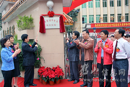 双方单位负责人签约 12月18日,由省中医院和市中医院合作建立的“协作医院”签字暨挂牌仪式在市中医院举行。省中医院院长吕玉波、省中医院党委副书记黄慧玲、省中医院党委副书记翟理祥,市领导翟付元、赖燕芬和市卫生局等领导出席了签字仪式,并为“协作医院”揭牌。 广州中医药大学副校长、省中医院院长吕玉波在签字仪式上表示,省中医院将在专科专病建设、制订专科专病发展规划、培养专科人才、开展中医药特色疗法、新技术和新项目等方面,对市中医院进行大力扶持。同时,还将安排专家到我院进行义诊、查房或举办专科知识讲座,为我市人民群众提供会诊、转诊等优先服务,并且优先接收其带教老师到省中医院参与教学法培训或观摩临床教学活动以及优先考虑吸收我市中医院共同参与各项课题,寻求双方更深层次的交流与合作,振兴我市的中医中药事业,藉此进一步推动中医强省的发展战略。 市中医院院长黄杰文在欢迎致辞中说,此次省、市中医院共建协作医院是经过双方医院友好协商,为达到加强医院间的交流与合作,合理利用卫生资源,缓解群众“看病难、看病贵”等问题。在建立合作关系后,双方将在医疗、教学、科研、医院管理、医院文化建设等方面进行协作与交流,实现资源共享、优势互补。 市卫生局局长郑华坚希望市中医院以此为契机,努力把医院建设成为现代化、综合性的中医医院,尽最大力量满足广大人民群众对中医药医疗服务的需求。