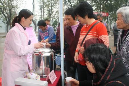 3月5日上午,市妇联、沙坪街道办联合在北湖广场举办以“百万妇女懂法律,家庭平安创和谐”为主题的“三八”维权周法律咨询和妇女奔健康宣传活动。我院积极参与此次活动,派出一名医生和一名护士为市民提供义诊咨询服务。当日为市民进行了免费测量血压和健康咨询,共派发健康宣传资料300多份,现场还推出免费“预防流行性感冒凉茶”赠市民的活动,共派发了300多杯凉茶,得到了广大市民群众的好评。