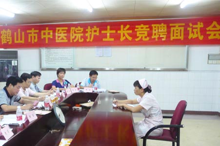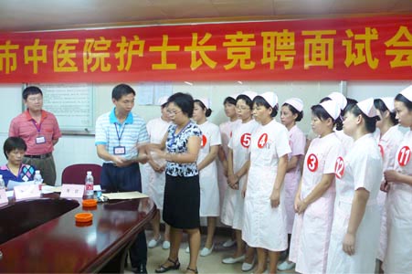 | 为适应医院发展需要,进一步规范和完善护士长选拔任用工作机制,建立起一支精干、高效的医院护理队伍,切实加强护士长队伍建设,建立和强化竞争机制,提高护士长队伍的整体素质。近日,我院2010年护士长聘任采取公开竞聘的形式,择优上岗。 7月6日,在我院八楼会议室进行了竞聘人员笔试。共有13名竞聘人员参加了笔试。 7月13日晚,在我院九楼会议室一场别开生面的竞聘演讲拉开帷幕。竞聘者围绕“如果我是护士长”展开精彩的竞职演说。在限定的六分钟内每一位竞聘人员都从不同层面、不同角度充分展示了自己的风采, 并对护士长竞聘上岗表示支持和拥护。 7月14日晚,在我院八楼会议室,13名竞聘人员进行了面试答辩。 按照医院部署,接下来还要进行民主测评和组织考察。护士长竞聘上岗工作将于7月28日结束。届时,将有一批护理工作经验丰富、有较强的管理能力及协调能力、综合素质较高的护理人员走上各科护士长的岗位,为我院的护理工作注入新的活力。 此次护士长竞聘上岗,不但在医院上下产生了强烈反响。而且使一些在职的护士长在新机制面前,产生了从未有过的危机感。年轻的护士们更是受到鼓舞。她们从这次竞争中明白了:医院新的机制选拔人才,给每个护士提供了平等的机会,打破论资排辈,让人心服口服。只要有真才实学,只要全面发展就有干头。这将对我院护理工作的发展产生积极深远的影响。