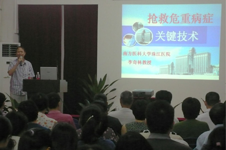 7月16日晚,我院邀请南方医科大学珠江医院曾其毅院长和急诊科李奇林教授作学术讲座培训班。我院与兄弟单位160多名医务人员参加了培训,培训班上曾其毅院长作了《抗生素诱导的炎症反应》的学术讲座,曾院长用生动的例子从不同的角度讲解抗生素在杀灭病原菌的同时也引起大量病原菌组份释放,进而导致炎症因子释放,产生炎症反应。曾院长希望广大的医务工作者在日常的诊疗活动中合理使用抗生素,确保患者用药安全。 此外南方医科大学珠江医院急诊科主任李奇林教授作了《抢救危重病症关键技术》的学术讲座,李教授通过以案说法讲解了在危重症的救治中必须做到重视接诊与首诊处理,熟悉危重急症的主要病种与急救要点,李教授还解读了 CPR指南从2005到2010研究进展的相关内容。