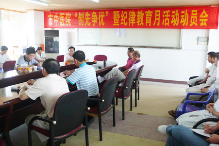 | 7月30日下午,我院召开创先争优暨纪律教育学习月活动动员大会,我院共有35名党员参加了会议。 我院党支部书记、院长黄杰文传达了市委和市卫生局关于开展纪律教育学习月和创先争优活动的有关精神,并宣读和讲解了《鹤山市中医院深入开展创先争优活动的实施方案》,并对活动进行了全面的部署。要求全体党员要统一思想,提高认识,明确深入开展纪律教育学习月和创先争优活动的重大意义;要把开展纪律教育学习月和创先争优活动与转变作风抓落实结合起来;坚持用各项工作的实际成果来检验纪律教育学习月和创先争优活动的成效,防止两个教育活动流于形式、走过场。
