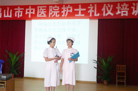 | 为了提高护士的整体形象和素质,从而提高护理服务质量,我院于8月31日对全院护士进行了礼仪培训。礼仪培训活动主要包括以下三项内容:一是由崔润仪护士长进行护士礼仪专题讲课,并结合图片进行讲解。内容包括护士礼仪基础、护士仪容礼仪、护士服饰礼仪、护士体态礼仪、护士语言礼仪、护士工作礼仪等;二是由林杯华护士进行现场礼仪示教;三是抽查护士进行现场练习。通过生动形象的培训,护士长和参加培训的护士收获很大,感触很深,大家普遍体会到护士服务礼仪方面的修炼和提升是十分重要的。这次的培训,把抽象、空洞的口号式服务用词量化、具体化、形象化,使护士们了解了很多规范的礼仪知识,对提升护士个人形象,创造全程优质化、专业化、人性化的护理服务有很大的促进作用。
