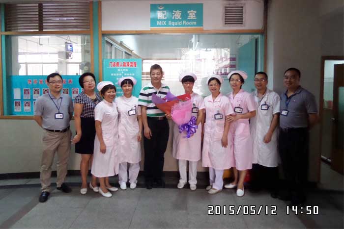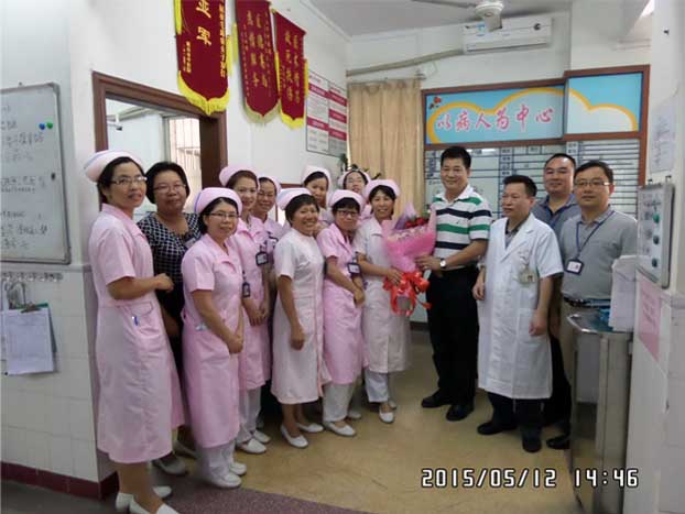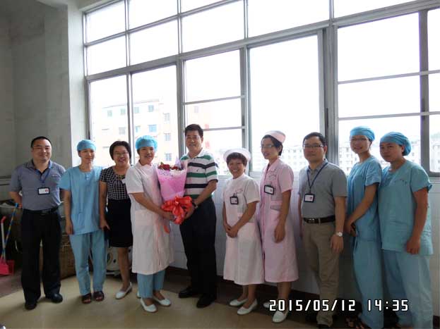 为庆祝“5.12”国际护士节,我院党总支部书记、院长黄杰文带领班子成员和护理部主任一行,代表医院为坚守在临床一线的护士们送去节日的慰问和祝福。 慰问小组一行带着精心准备的鲜花,先后去到临床一线科室,亲切看望坚守在护理工作岗位上的护士们。院领导亲自为护士们献花,祝福白衣天使们节日快乐。同时,院领导鼓励护理工作者们要进一步传承和弘扬南丁格尔甘于奉献、救死扶伤的人道主义精神,发扬护理事业的光荣传统,加强护理知识和技能的学习,培养良好的耐心及责任心,把关爱送给每一位患者,以“爱心、耐心、细心、责任心”对待每一位病人,做好护理工作。