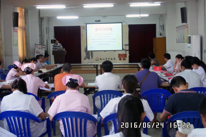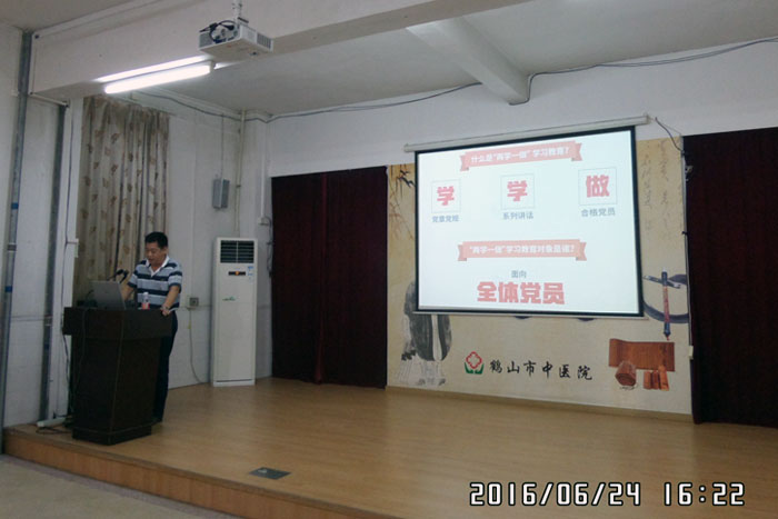 为进一步推进“两学一做”学习教育活动的深入开展,6月24日下午,我院召开“两学一做”教育活动专题学习会。党支部书记、院长黄杰文同志亲自进行党课辅导。医院党支部委员及在职党员参加了会议。会议结合“两学一 做”的具体要求以及如何结合医院发展实际,更好地贯彻落实“两学一做”学习教育进行了交流和具体部署。 党支部书记、院长黄杰文强调:“两学一做”学习教育,是每个党组织的必修课,是每个党员的责任和义务。全院党员干部要切实根据医院的布置,以开展“两学一做”学习教育为契机,针对医疗行业特点、结合科室实际情况,进一步推进学习教育工作开展,发挥广大党员干部的先锋模范作用,立足岗位勇当先锋。要将“两学一做”学习教育成果体现在服务医院中心工作的能力提升上,体现在推动医院改革发展的成效上,为医院各项建设的顺利开展,为更好地服务广大群众健康多做贡献!