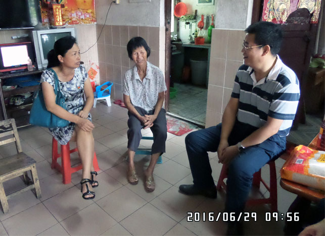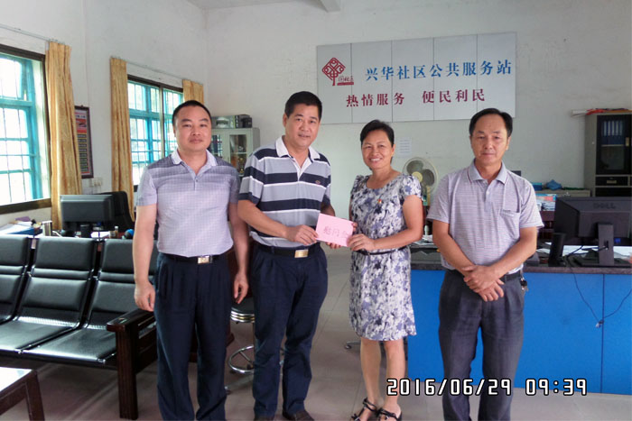 为纪念建党95周年,深入践行“两学一做”学习教育活动,6月29日上午,我院党支部书记、院长黄杰文带队前往双合镇兴华社区,了解社区各项工作情况,送上党员关爱基金。随后走访慰问了结对帮扶的特困老党员黄秀兰,为老同志送上了节日慰问品和慰问金。