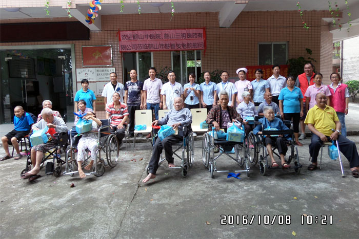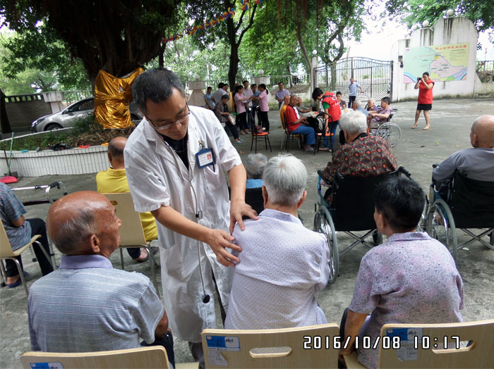 “关爱老人、尊老爱幼”是中华民族的传统美德。重阳节来临之际,10月8日上午,我院何传强副院长带领医疗骨干,分别到鹤山市福利院和古劳镇敬老院开展“九九重阳节 敬老送健康”义诊。义诊活动现场,医务人员为老人们免费测血压和测血糖,针对老人常见病进行问诊和诊疗,对有需要的老人现场免费开方送药,为老人提供一对一的诊疗,这一举动获得了福利院老人们的好评。 在现场,我院专家给老人们讲解了合理饮食等方面的健康知识,指导老人们如何养成良好的生活习惯,爱心义诊现场洋溢着浓浓的爱意。此次义诊活动,不仅深得老人们的好评,而且得到了福利院工作人员的热烈欢迎和高度评价。