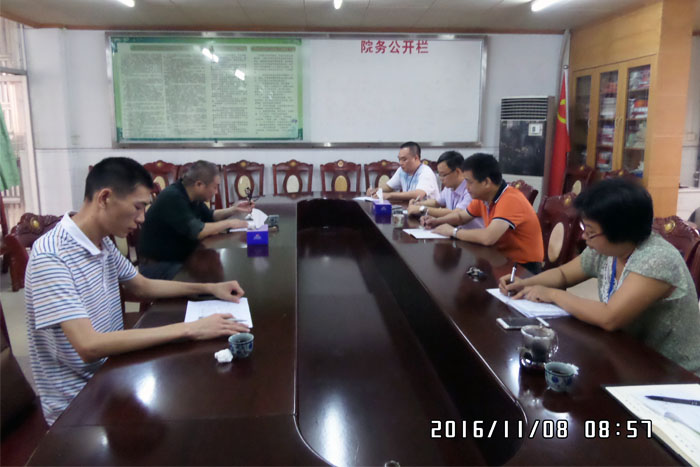 11月8日上午,鹤山市纪委派驻第九纪检组组长葛红军,第二纪检监察室主任黄健明,来到我院就履行党风廉政建设主体责任情况进行座谈交流,我院班子成员参加了座谈会。 葛红军就落实党风廉政建设主体责任提出几点建议:一是党风廉政建设主体责任和监督责任是党章赋予的重要职责,要充分认识落实主体责任的重要性,不动摇、不懈怠。二是准确把握主体责任内涵。加强组织领导,管好用好干部;领导干部带头廉洁从政,发挥好模范带头作用;纪委协助党委履行好监督责任。三是要切实履行好党风廉政建设主体责任。强化教育管理;严明政治、工作、生活纪律;严格责任追究,要敢于担当,以零容忍态度惩治腐败,坚决查处不收手。四是加强带班子,带队伍建设,抓大带小,发现问题早提醒,从源头上杜绝问题的发生。 黄杰文院长表示:领导班子成员要按照党风廉政建设要求履行主体责任,发挥带头作用;深化反腐倡廉工作,规范医院各项工作;加强行风建设,提升服务与质量水平,做好社会满意度和病人满意度工作;党风廉政建设常态抓与重点抓结合,建立健全党风廉政建设工作长效机制。