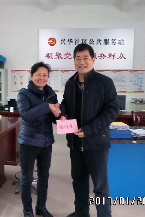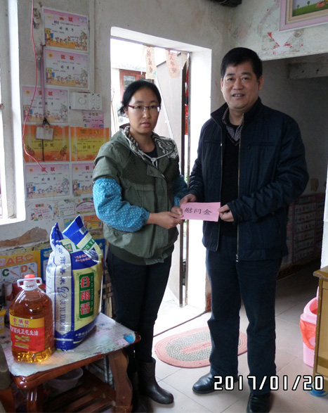 1月20日上午,我院党支部书记、院长黄杰文来到双合镇兴华社区开展节前扶贫慰问活动。黄院长首先来到双合镇兴华社区,了解社区各项工作情况,并到对口帮扶贫困党员潘凤霞家中进行慰问,送上慰问金和慰问品。