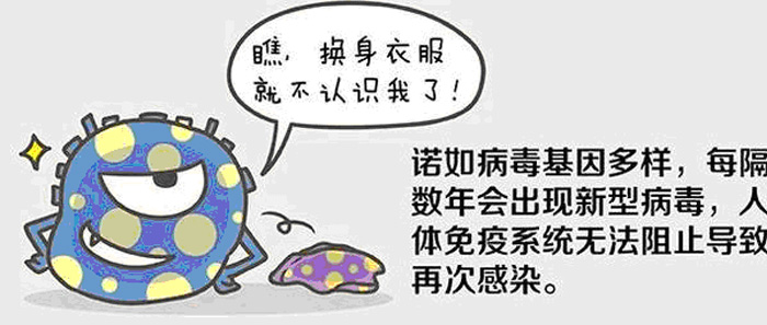 诺如病毒有很强的感染性,18-100个病毒颗粒就能致病。一个被诺如病毒感染的病人通过呕吐物或排泄物就能释放出数以亿计的病毒颗粒!它可以感染任何人,而且可以多次感染。只要不是同一种诺如病毒,就没有一劳永逸的免疫力。