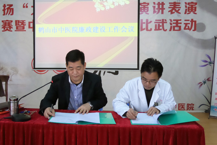 为进一步推进2017年反腐倡廉和行风建设工作深入开展,确保医院各项事业健康发展。3月2日下午,我院召开2017年党风廉政建设工作推进会。  会上,党总支部书记、院长黄杰文传达了鹤山市纪委十二届第二次全会精神,并针对医院实际情况,对党风廉政建设工作提出了要求;负责纪检工作的张艳文副院长就如何开展2017年党风廉政建设工作作了发言,提出了12项廉政工作要点,重点要加大党风廉政建设与作风建设的宣传力度;狠抓廉政教育,加大预防腐败和廉政制度建设,推进医院党风廉政建设工作取得新成效,做到廉政为民,廉洁行医。  会上,院党总支部书记、院长黄杰文同志分别与各科室主任签订了2017年“无红包、无回扣医院”责任书、科室综合管理目标责任书和医疗质量安全生产责任书。