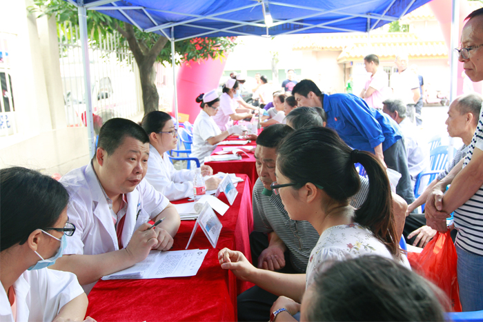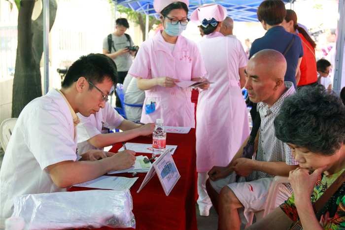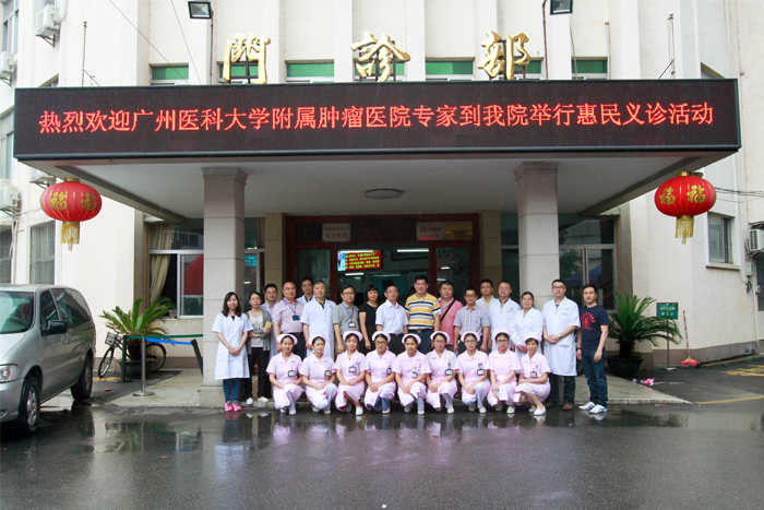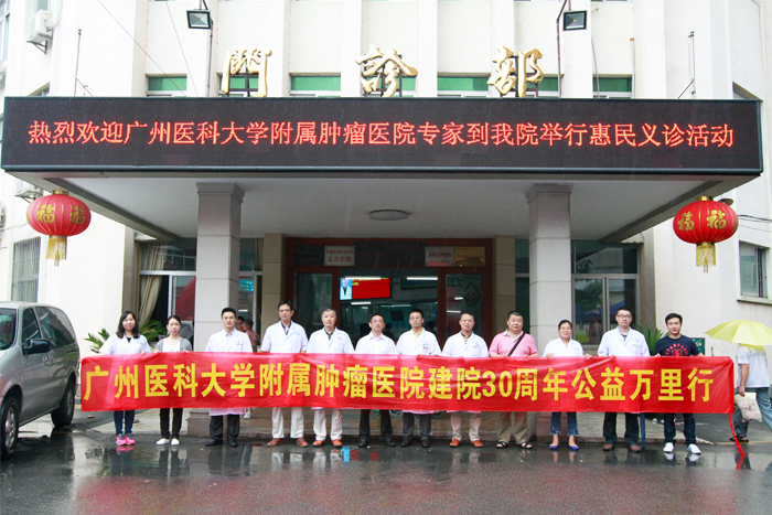 5月13日上午,广州医科大学附属肿瘤医院专家莅临我院,举办以“专注健康 全心为您”为主题的建院30周年公益万里行义诊咨询活动。副院长陈冬平带领10名医疗专家,把重视健康的理念和优质医疗服务带进基层医院,活动受到市民群众的好评。  上午9时30分,义诊拉开帷幕,专家们耐心倾听市民群众讲述病情,认真为大家进行检查和讲解。尽管天公不作美, 义诊期间遭遇几场阵雨,但却丝毫没有减弱专家们的热情,他们对每位患者的病情认真记录,热情并耐心地向患者解释病情的发展及变化,制定治疗方案并进行健康宣教等服务。当天,接待咨询的患者及家属共200余人,免费发放癌症防治科普宣传资料1000余份。市民对义诊活动感到满意。     当天,肿瘤医院王进主任等数位专家在我院开展肿瘤知识讲座,内容包括《鼻咽癌诊断及放疗毒性处理》、《肿瘤患者化疗后注意事项及随访》、《乳腺癌术后并发症的处理》、《微波在治疗骨肿瘤中的应用》及《放射性皮炎的护理》课题。专家们通过大量的临床实例进行深入分析,使医务人员对如何提高临床能力有了较为全面的认识和了解,郑教授他们通俗易懂、生动有趣的授课,引起了大家的共鸣,赢得了现场阵阵热烈的掌声。