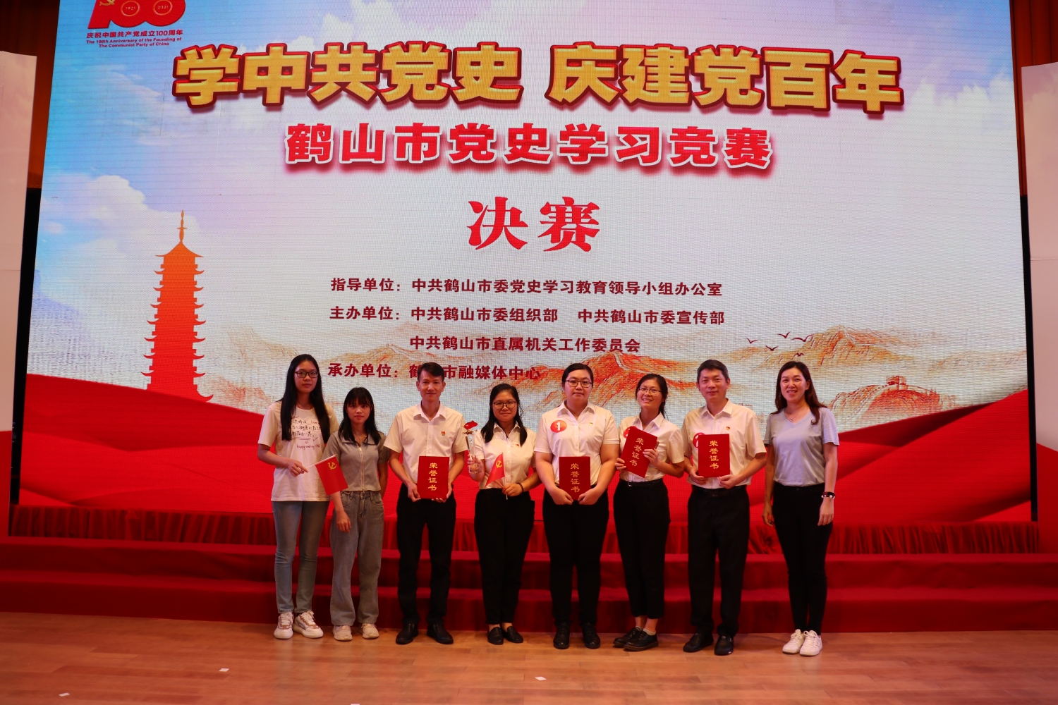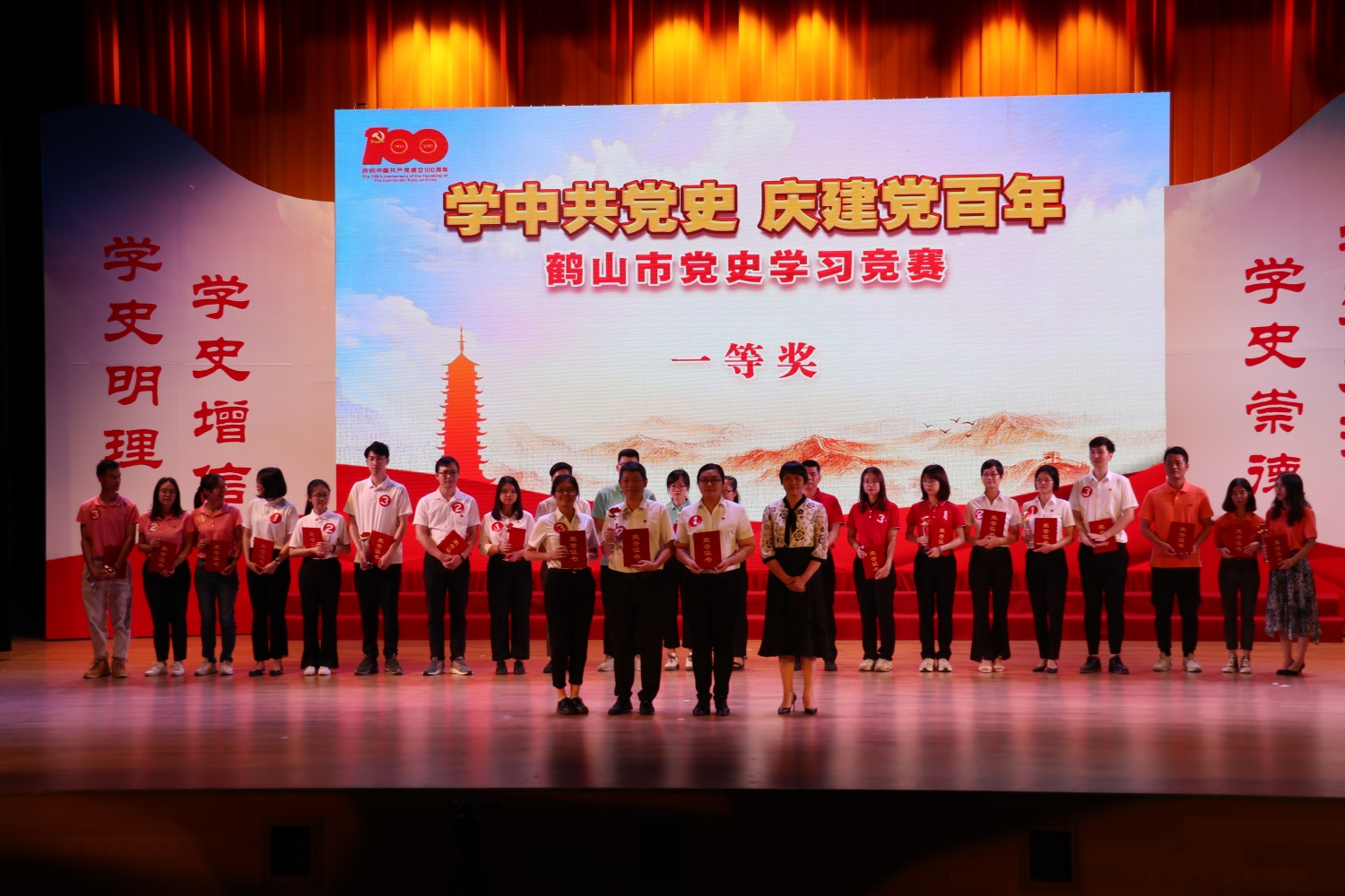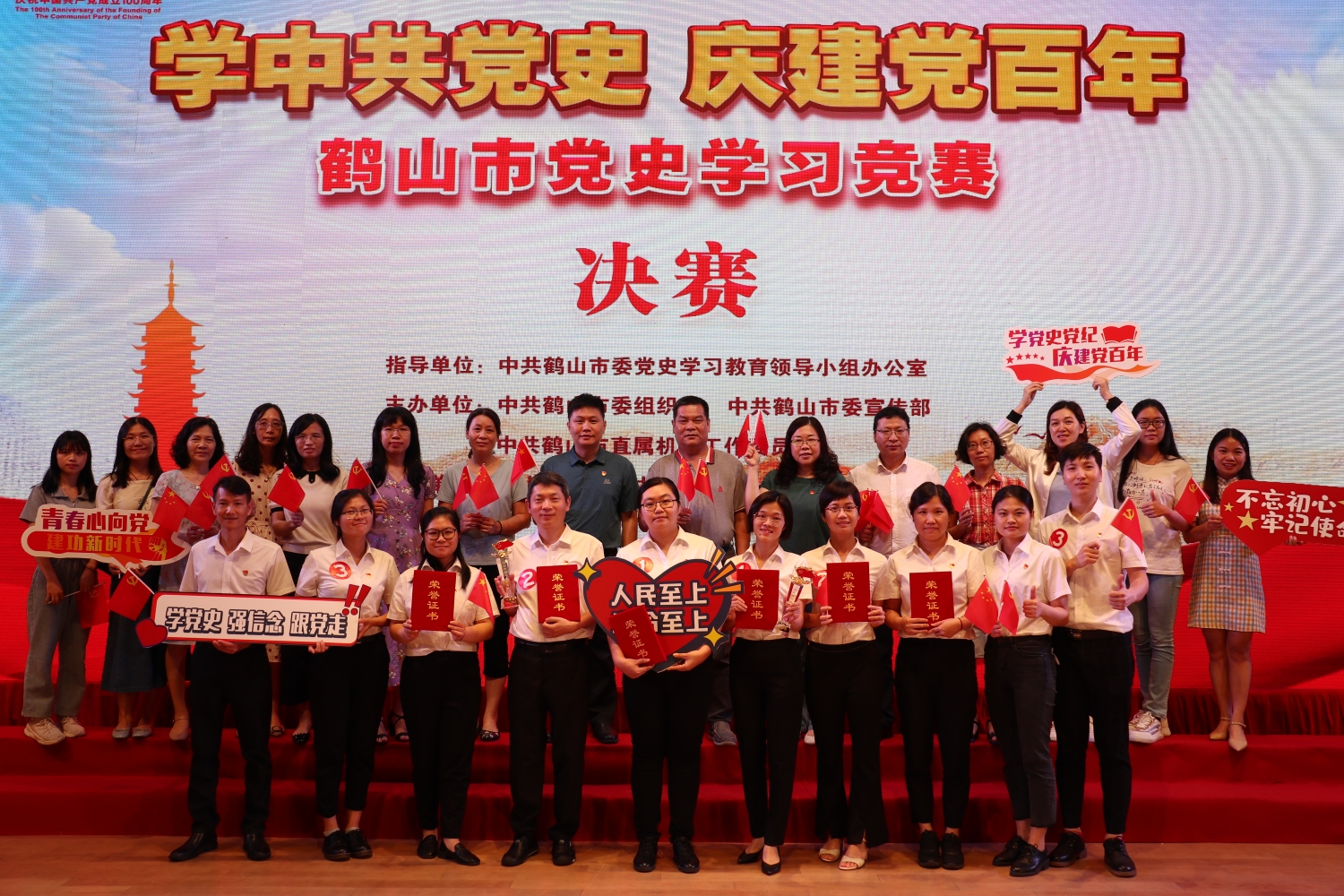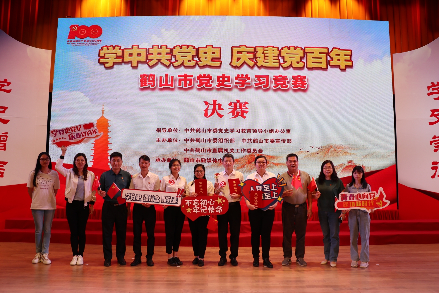 学百年党史,守初心使命。为深入推进党史学习教育,重温光辉历史,弘扬革命精神,推动广大党员干部真正做到学史明理、学史增信、学史崇德、学史力行,坚定共产主义理想信念,推动我市建设湾区现代化创业之城。5月21日,我院代表与卫健局代表组队参加鹤山市 “学中共党史 庆建党百年”鹤山市党史知识学习竞赛,荣获一等奖。