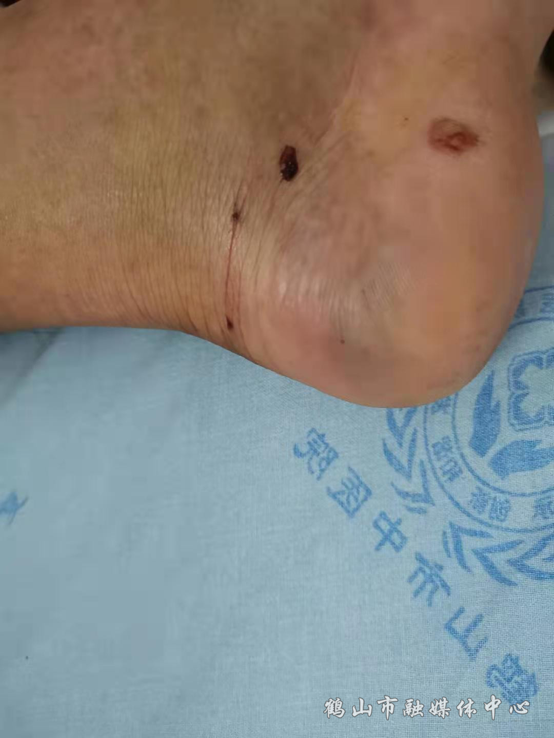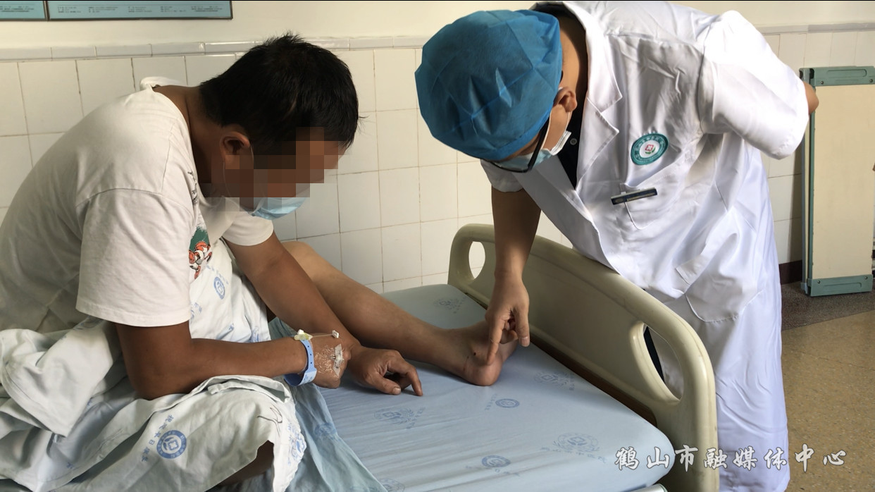 后来,看到受伤的脚越来越肿,刘先生赶紧叫朋友将自己送到了市中医院。经过医生诊断,确定为毒蛇所咬,马上对其使用了抗蛇毒血清进行对症治疗。“这两个点就是毒蛇咬过的牙痕,毒蛇咬过是两个点的,没毒的蛇咬的症状是两边都有很多牙齿印。”医生说。