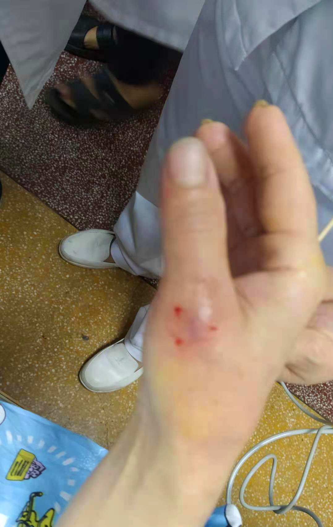 5月27日早上,记者来到了市中医院,见到了被毒蛇咬伤的患者刘先生。他告诉记者,昨晚7点半左右,他在古劳镇某水库走路时,不小心被不明物体咬伤。“我被一个东西叮了一下,感到很疼,回去一看,都肿胀起来了,我当时没有看到蛇,也不知道是什么蛇咬的。”刘先生说。