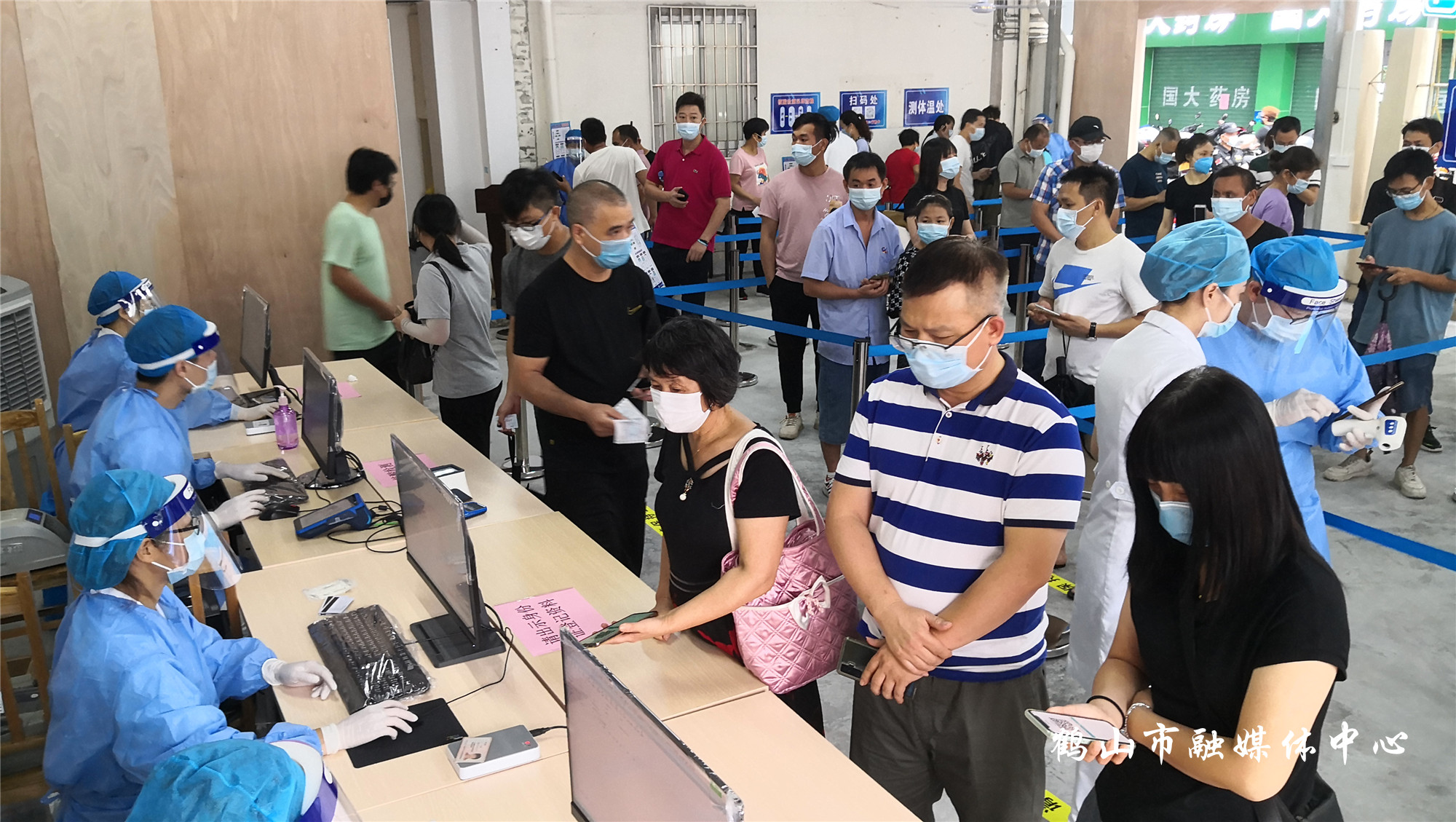 早上八点,记者在采样点看到,市中医院20多名医务和后勤人员已经就位,引导群众有序排队,测量体温、扫描健康码和行程码、填表、缴费、核酸取样……各种服务指引有条不紊,相关过程井然有序。