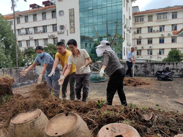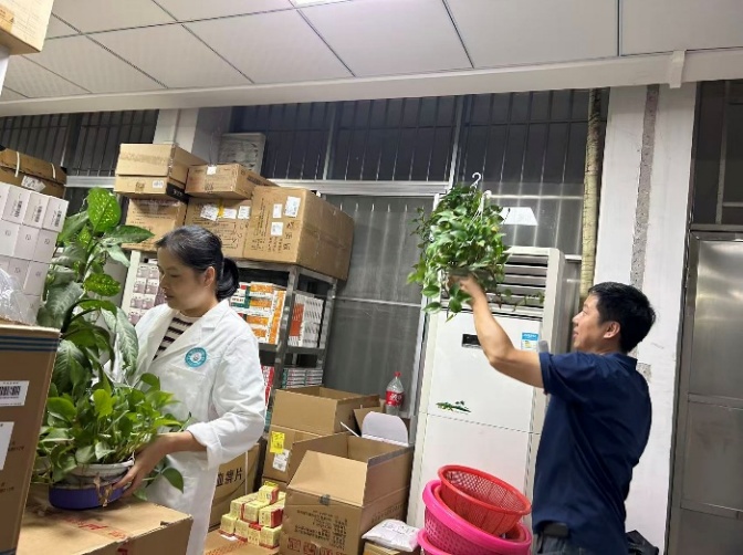 针对两院区“范围广、闲置区域多、清洁压力大”的情况,院领导多次现场调度,明确“本部强基础、旧址清隐患”思路,成立院长牵头的专项组,统筹后勤总务、院感、医务股协同作战,每日召开推进会,解决实际难点。聚焦人医旧址杂物堆积问题,工作组“分区清理、重点消杀”:清扫楼道闲置区,清废约3吨,封堵排水沟7处,开展“地毯式”消杀覆盖10000平方米,有效降低蚊媒密度。