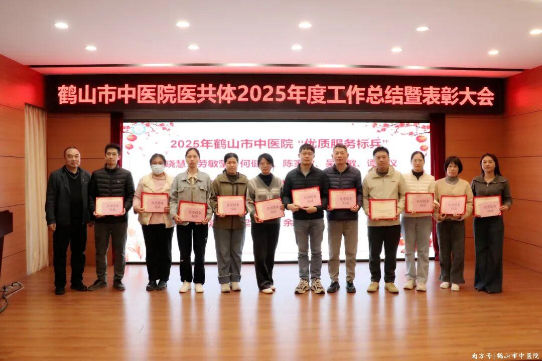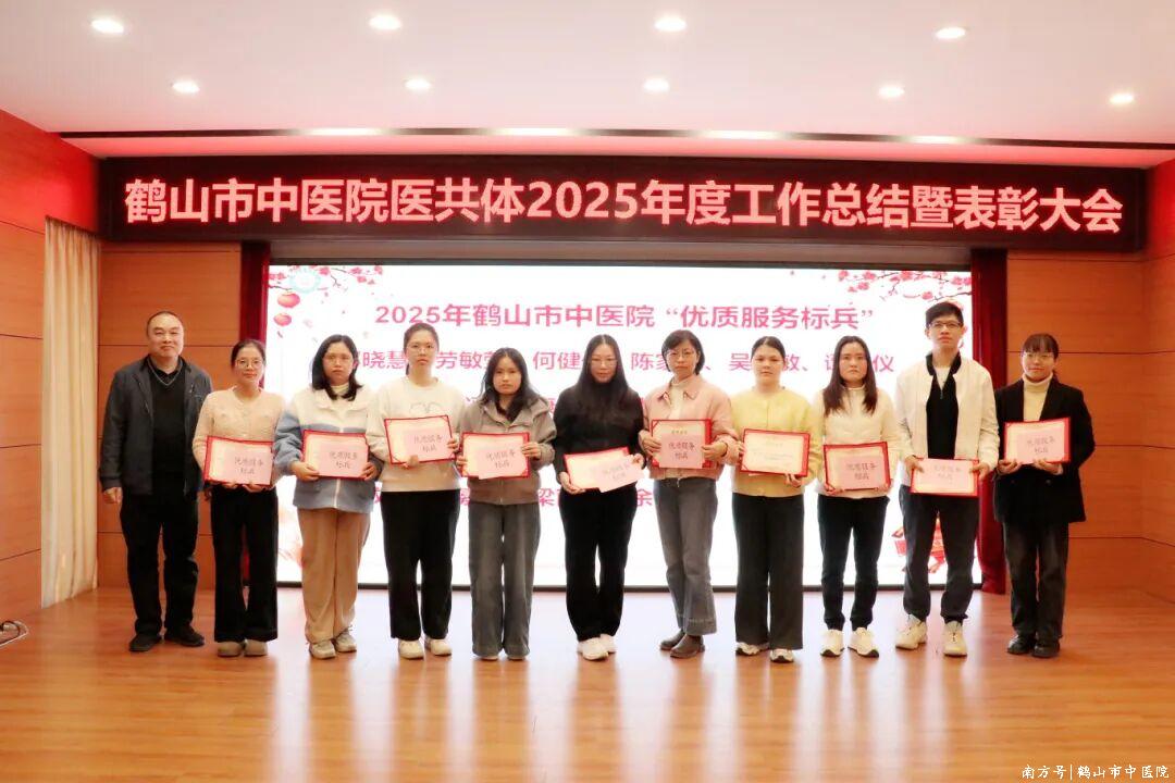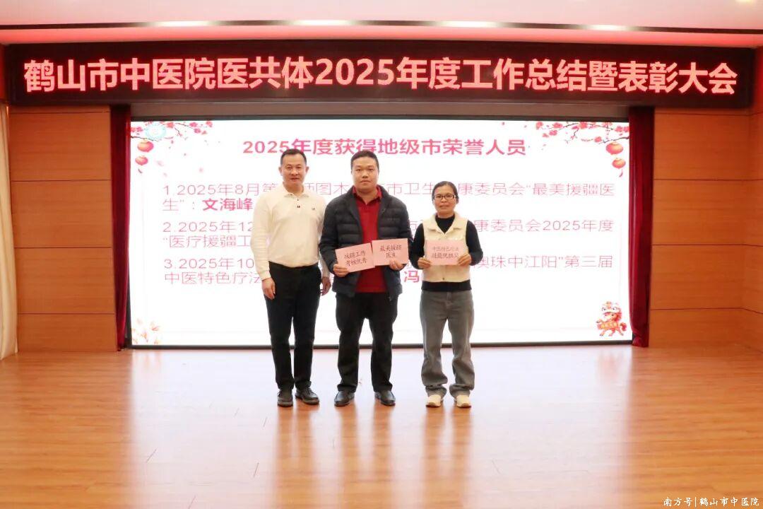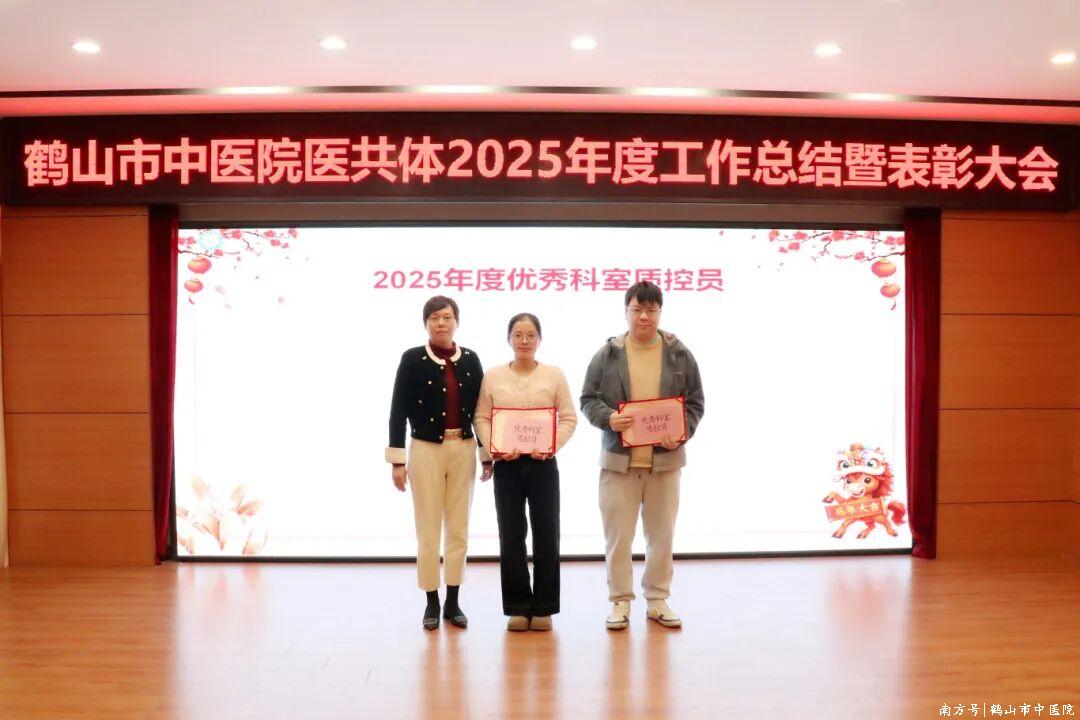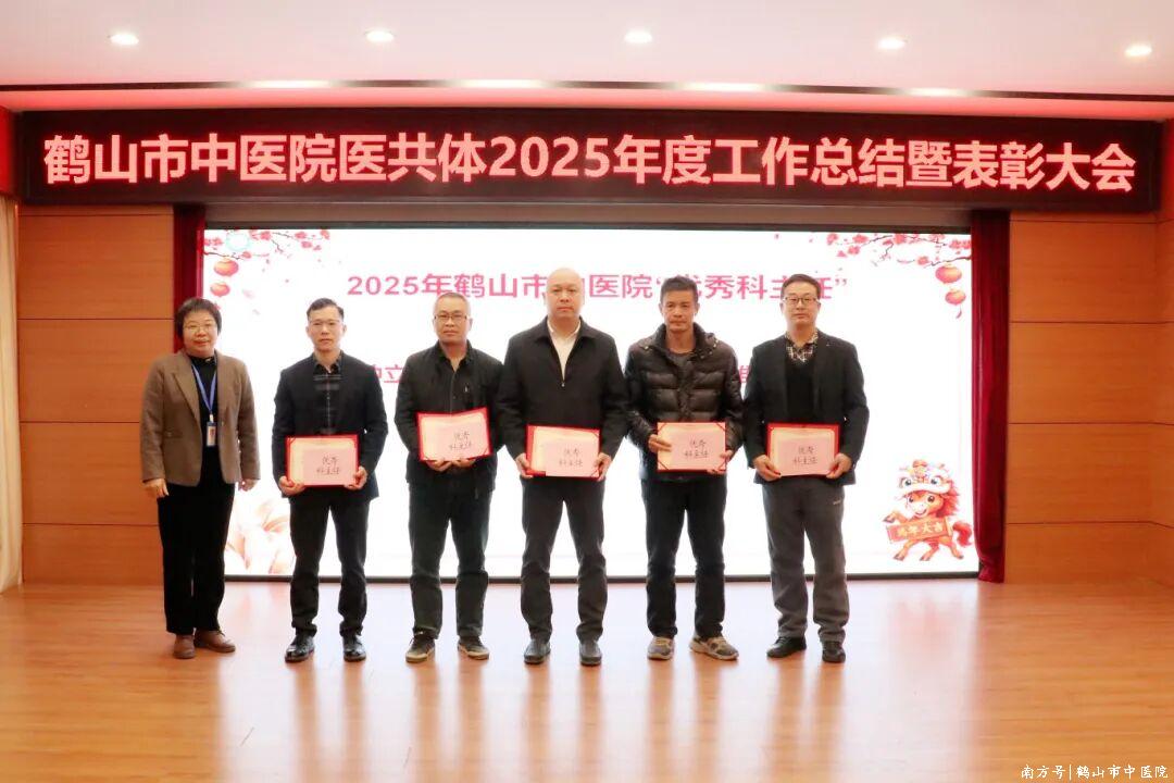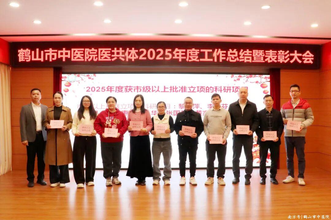 最后,黄睿超副院长宣读先进集体和先进个人的表彰决定,大会对荣获2025年鹤山市中医院医共体优质服务标兵、先进科室、省市各级科研项目、省市各级荣誉奖励等进行表彰。