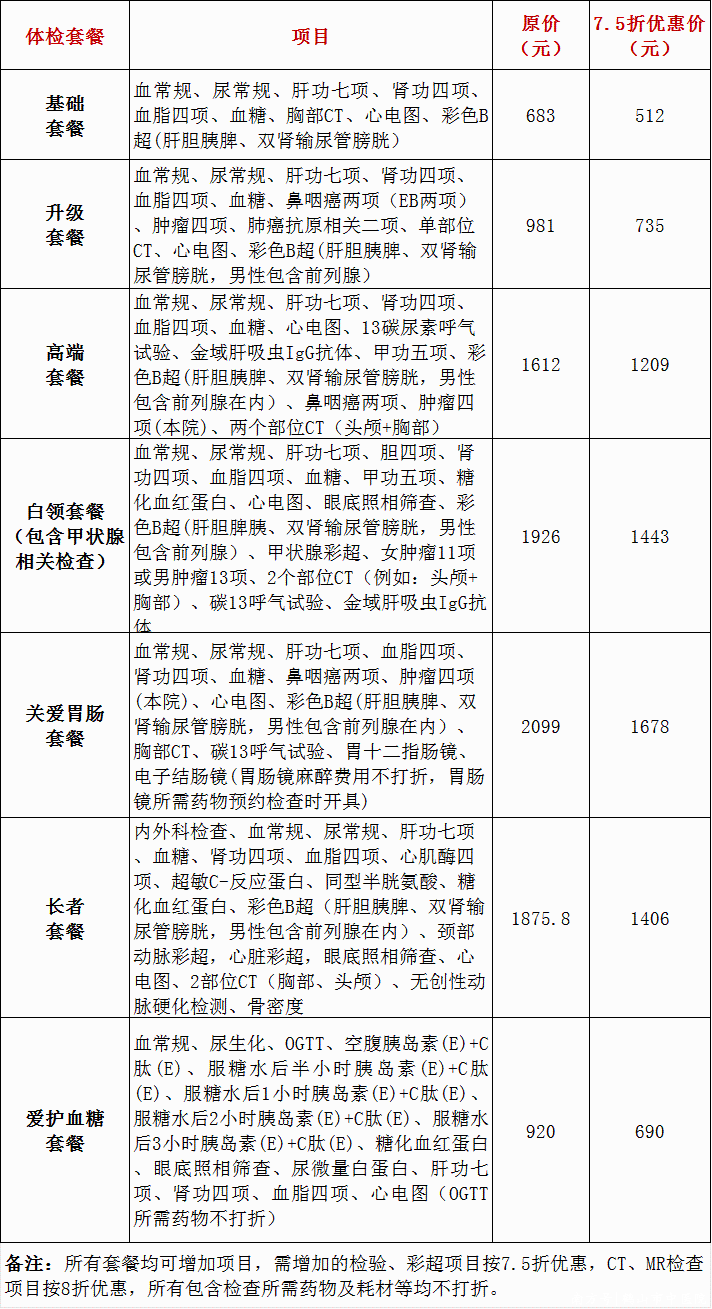 一、普通健康体检套餐