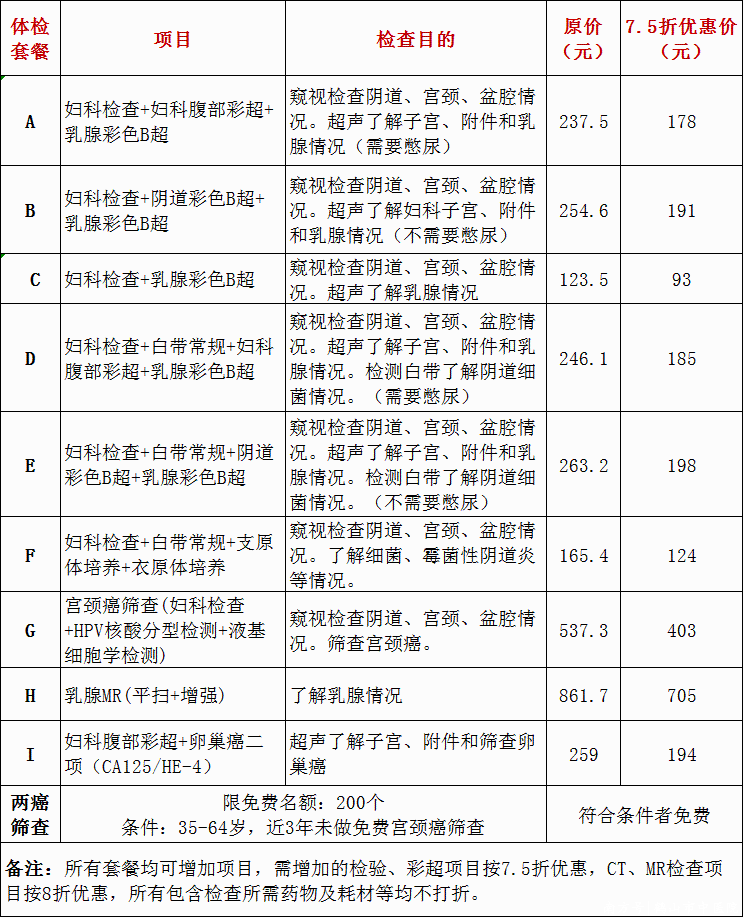 二、妇科专项体检套餐